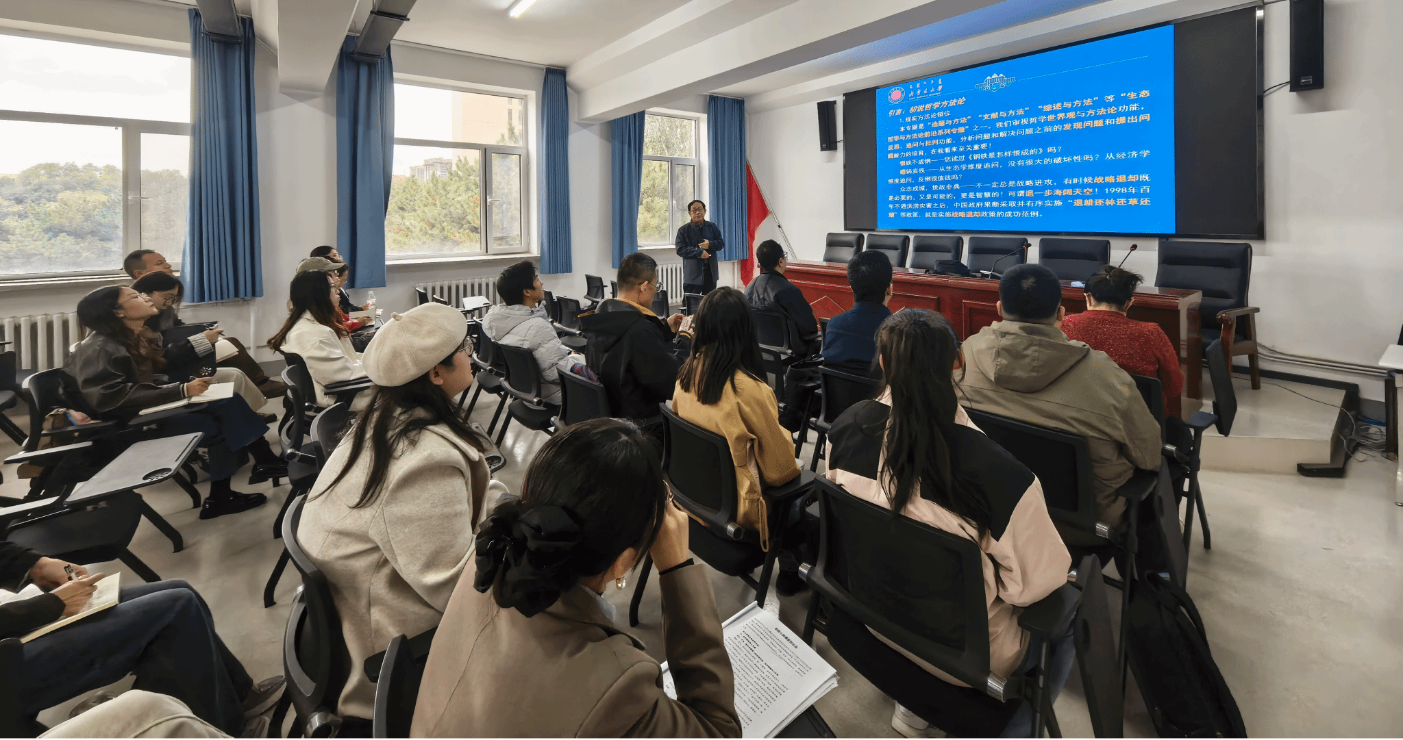 为深化思政课教师队伍建设,提升教师科研能力与教学水平,10月9日下午,马克思主义学院教师发展分中心主办的“教师专业素养提升系列培训”首场讲座在学院210会议室顺利开展。本次讲座特邀知名学者包庆德教授担任主讲,以《选题与方法:社会发展的生态向度及其进路》为主题,围绕科研选题方法与生态哲学研究,为全院教师带来一场兼具理论深度与实践指导意义的专题培训。