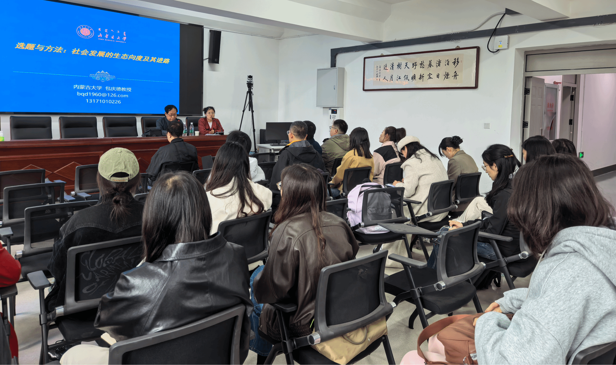 包庆德教授从马克思主义生态哲学的理论根基出发,结合自身丰富的科研经验,系统阐述了社会科学研究中选题的核心意义与方法路径。他重点分析了课题申报中如何精准定位研究方向、挖掘创新切入点,并以“社会发展的生态向度”为例,详细解析了从理论建构到实践转化的研究进路。包教授指出,思政课教师应善于从国家战略需求、学科前沿动态与教学实践中寻找研究课题,注重将生态文明理念与马克思主义理论教学相融合,实现科研与教学互促共进。在讲座中,包庆德教授还分享了课题申报书的撰写技巧与常见问题对策,强调选题应兼具理论价值与现实意义,并鼓励教师们跨学科整合资源,拓展研究视野。与会教师纷纷表示,包教授的讲解深入浅出、内容务实,为今后申报科研项目、优化教学设计提供了清晰的方向和可操作的借鉴。