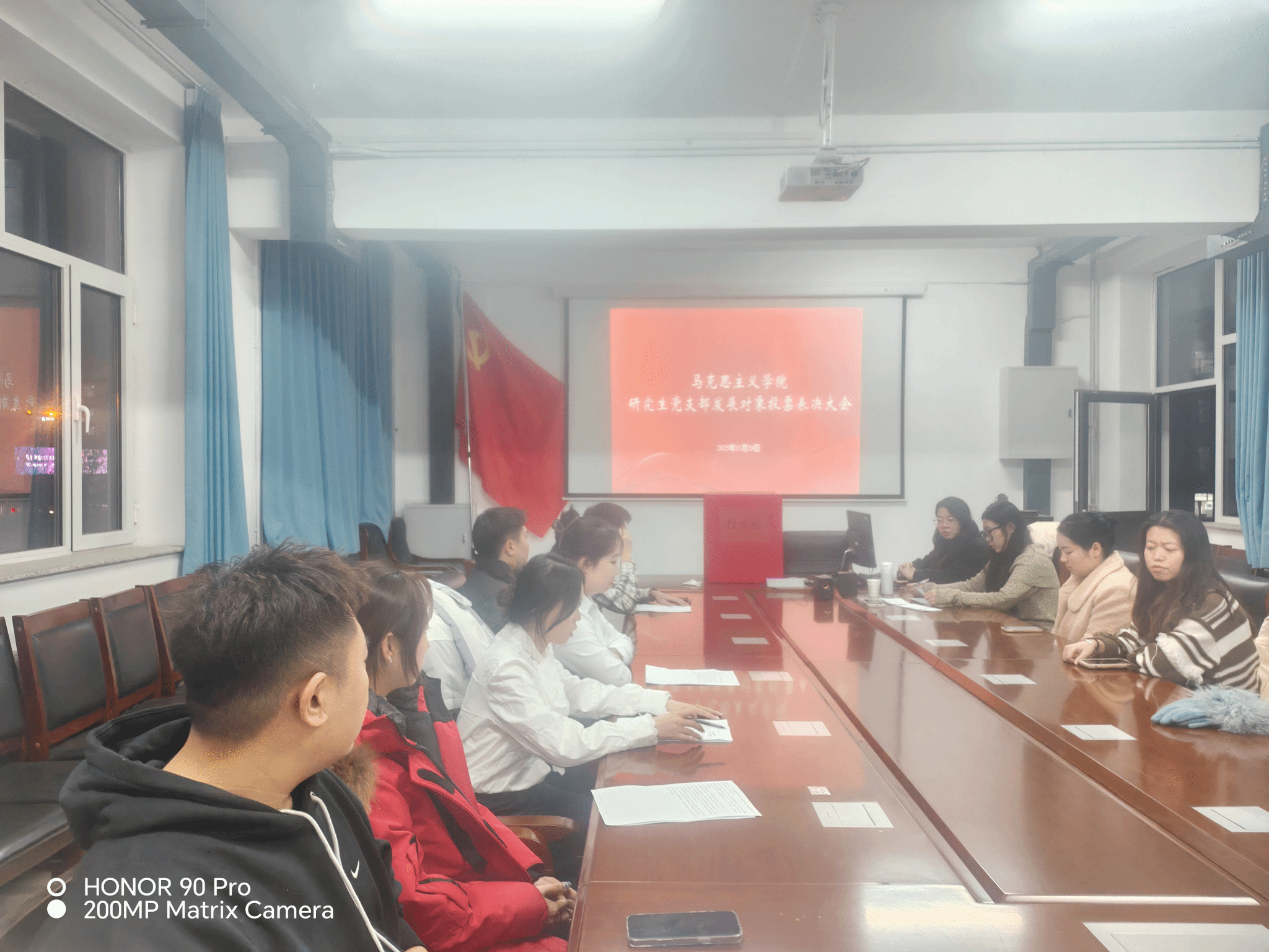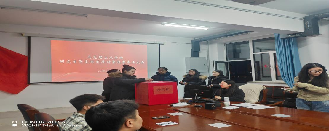 为严格规范党员发展工作,严把党员入口关,确保发展党员的质量,2025年11月28日晚7:30,马克思主义学院于学院206教室召开下半年发展对象投票表决大会。学院全体党员以线上线下相结合的方式参会。会议由龚穆菁副书记主持。